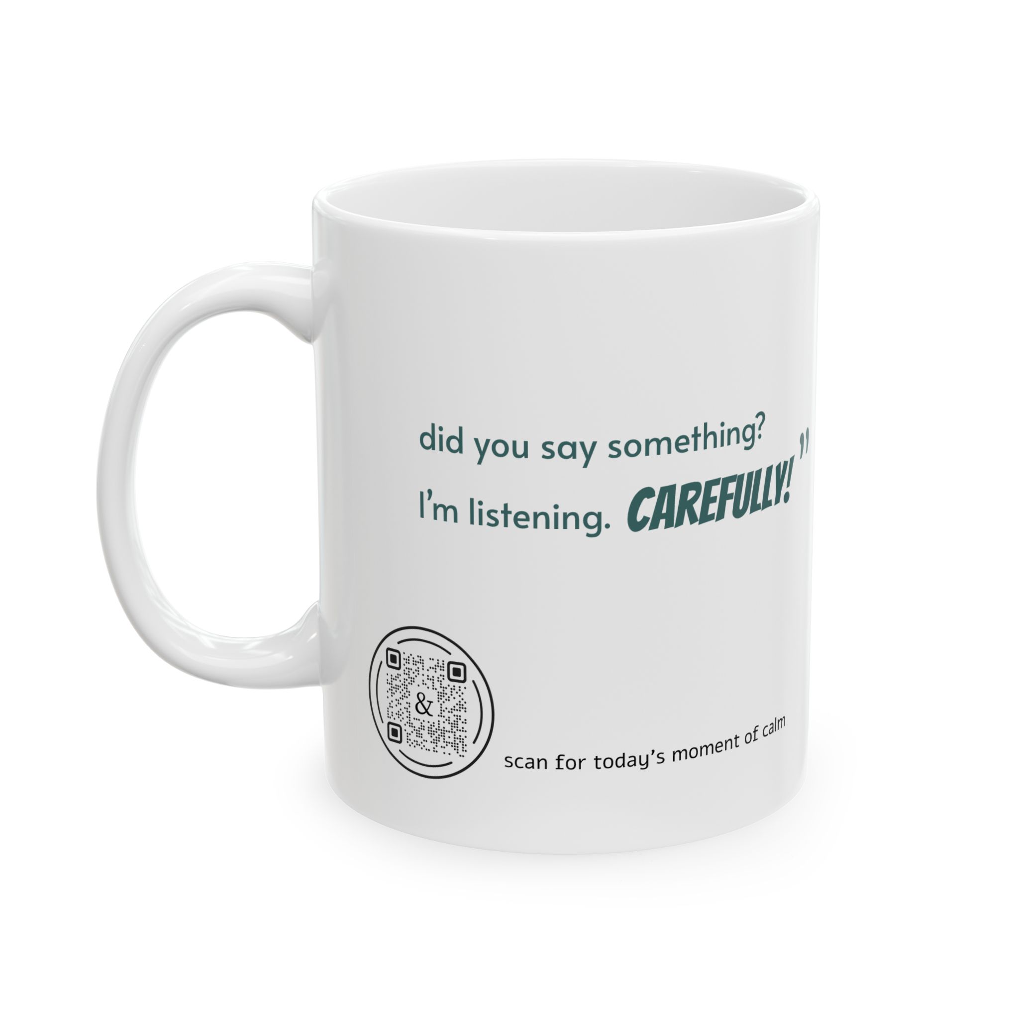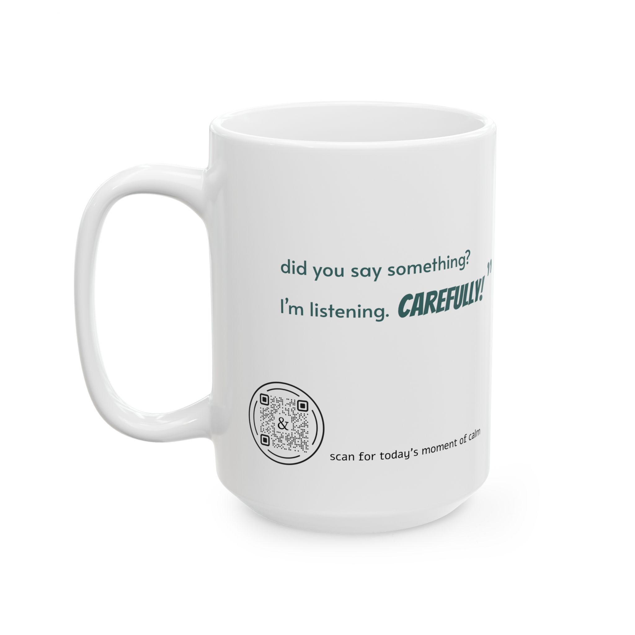 Each mug includes a discreet QR code on the back that unlocks a daily menopause message — a mix of humor, wisdom, and “you are not alone” moments designed specifically for women navigating menopause.